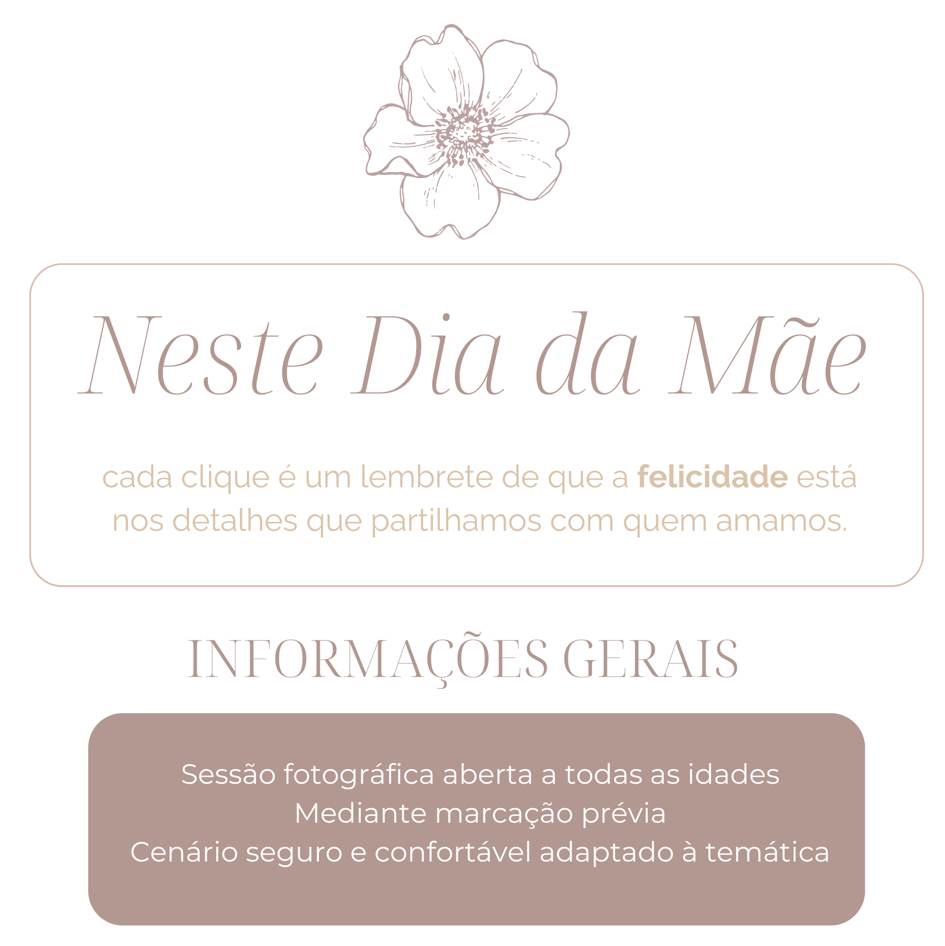 Através de um cenário intimista, pensado com carinho para esta data tão especial, convidamos as mães e os seus filhos a registarem momentos de amor, cumplicidade e ligação, criando lembranças que durarão para sempre.