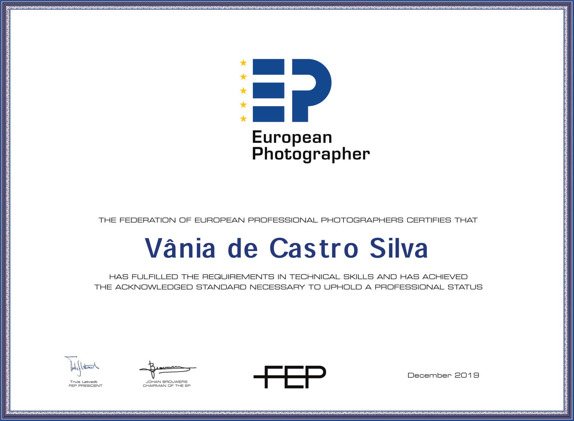Para terminar o ano em grande, recebemos a notícia da APPIMagem - Associação Portuguesa dos Profissionais da Imagem, de que fomos distinguidos com o EP (European Photographers), pela FEP Federation of European Professional Photographers. O EP é o primeiro nível de distinção pela Federação Europeia, que este seja o primeiro passo num caminho que sabemos que é longo, mas que trabalhamos para conseguir com um passo de cada vez.