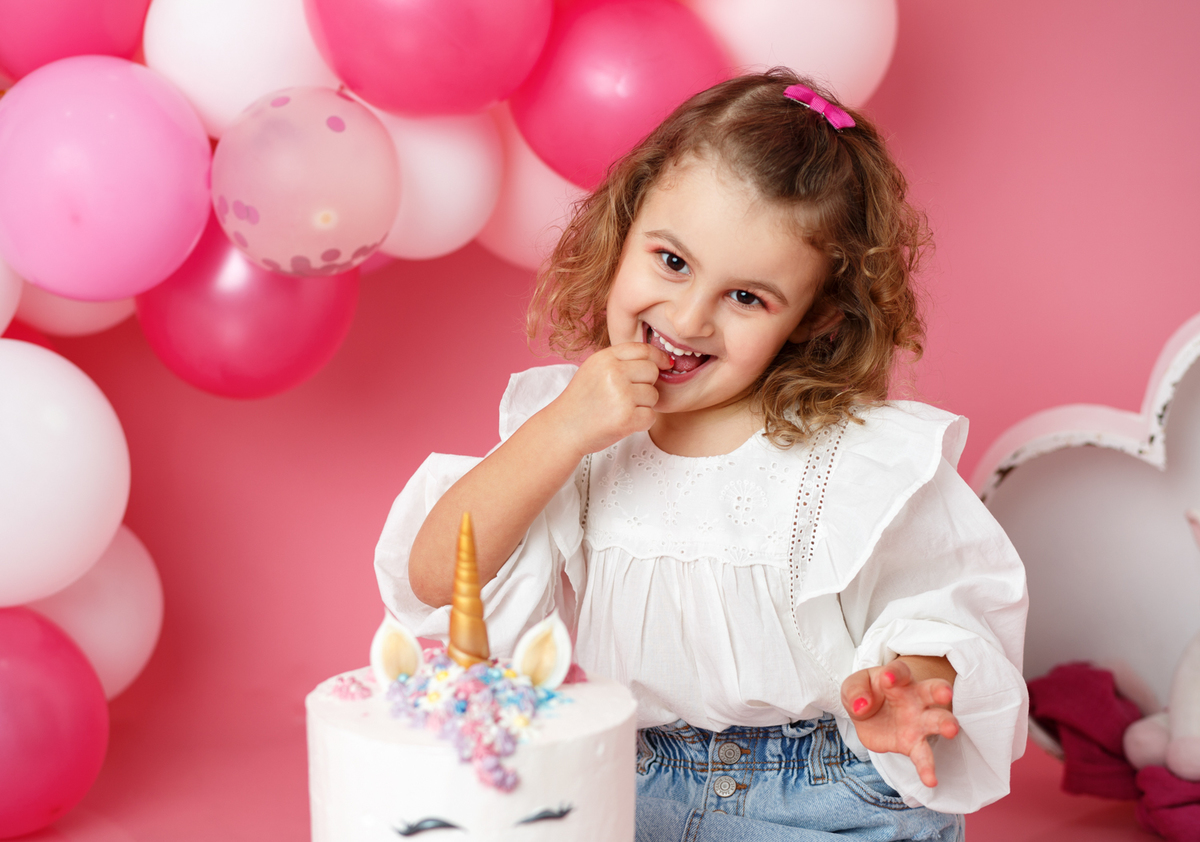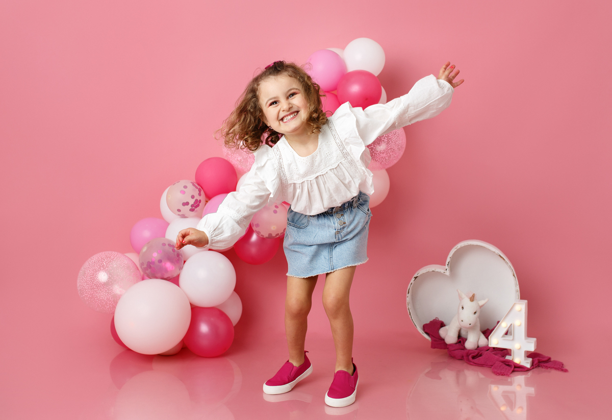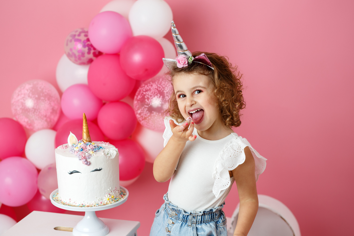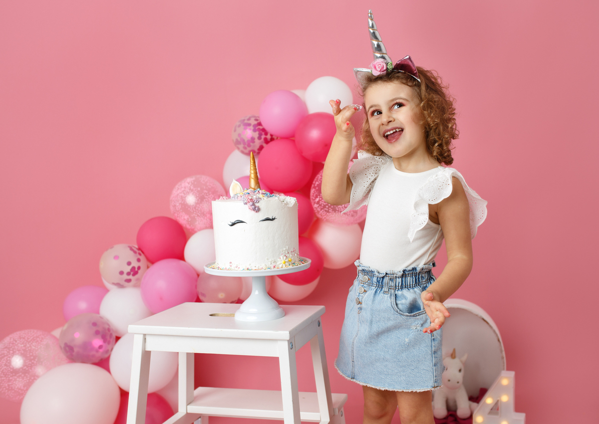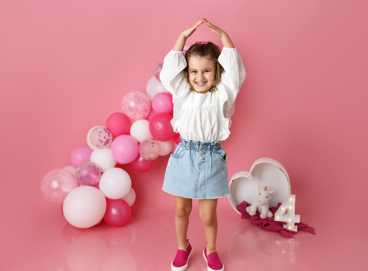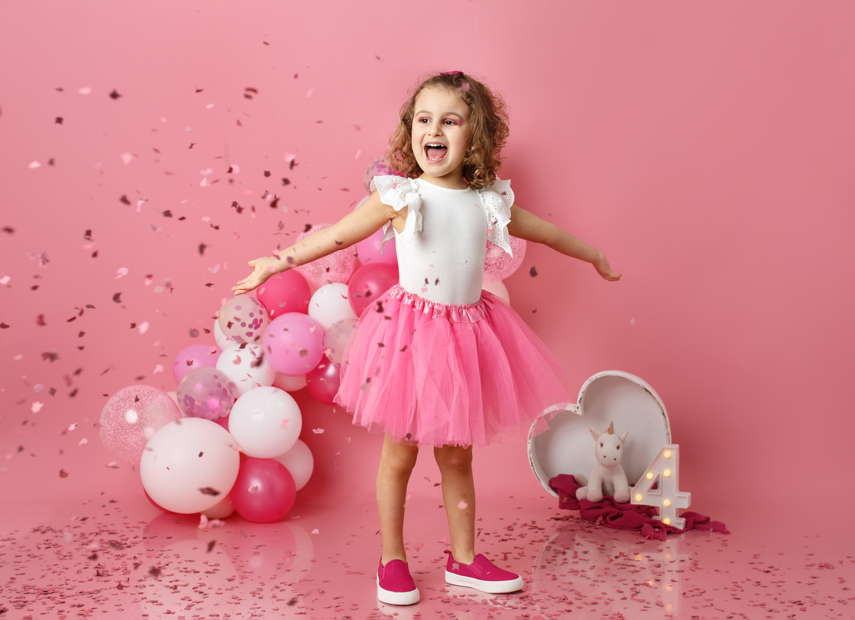 A sessão smash the cake da nossa Dianinha só podia ser muito colorida e divertida. É uma menina alegre, sorridente, bem disposta que adora cor, alegria e arco-íris. Com todas as suas características só podíamos escolher o cenário rosa "forte" como ela diz, um bolo unicórnio e arco-irís por dentro que ela amou e terminar a festa com confettis.