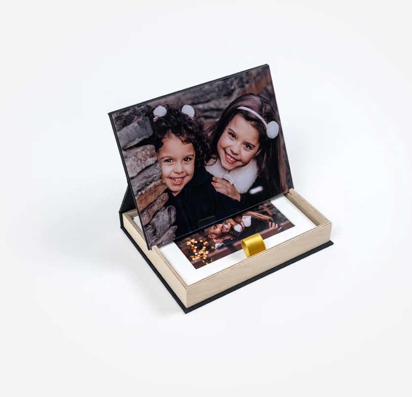 caixa com tampa em acrílico com 10 fotos