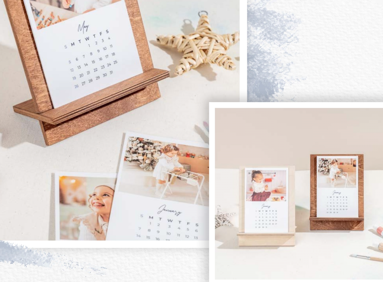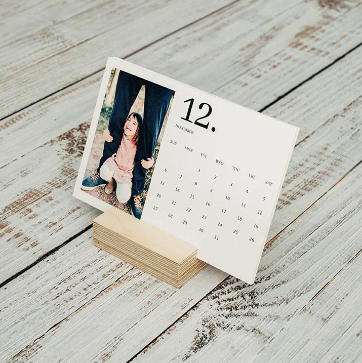 Calendário 15x20 com base em madeira - 1 foto em cada mês