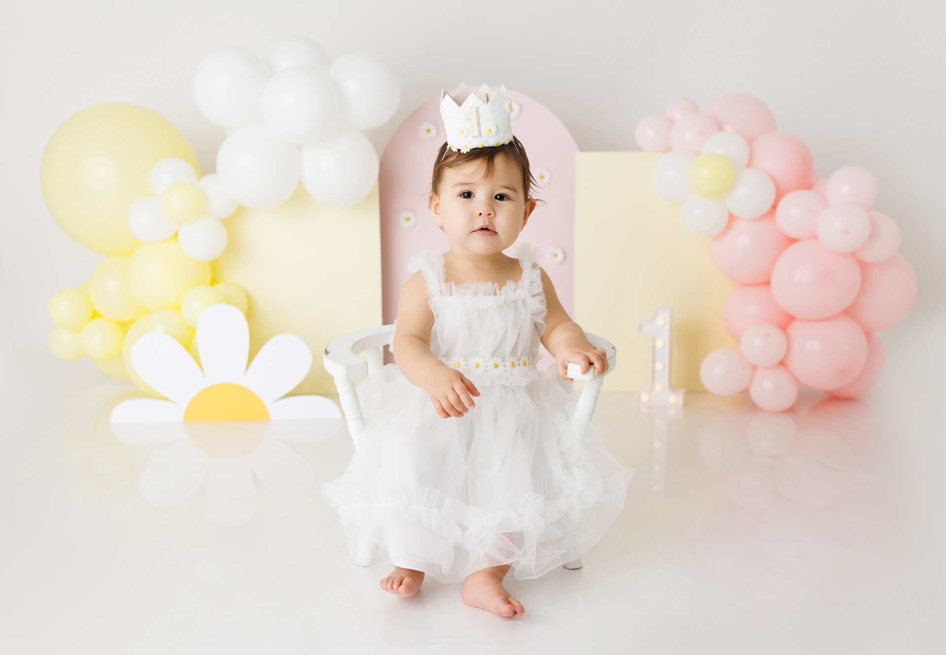 Para a sessão smash the cake apenas terá de levar a roupinha do bebé com que irá tirar as fotografias e deve ser vestida no estúdio.